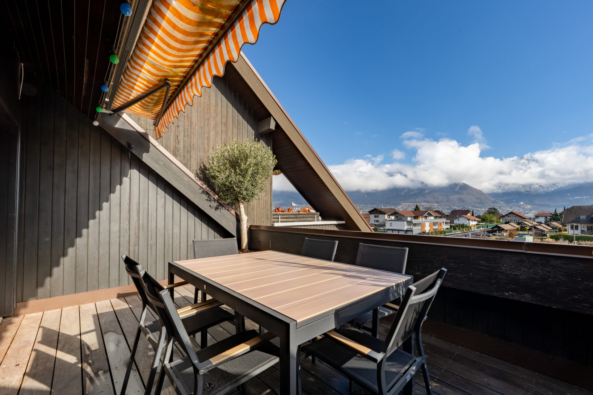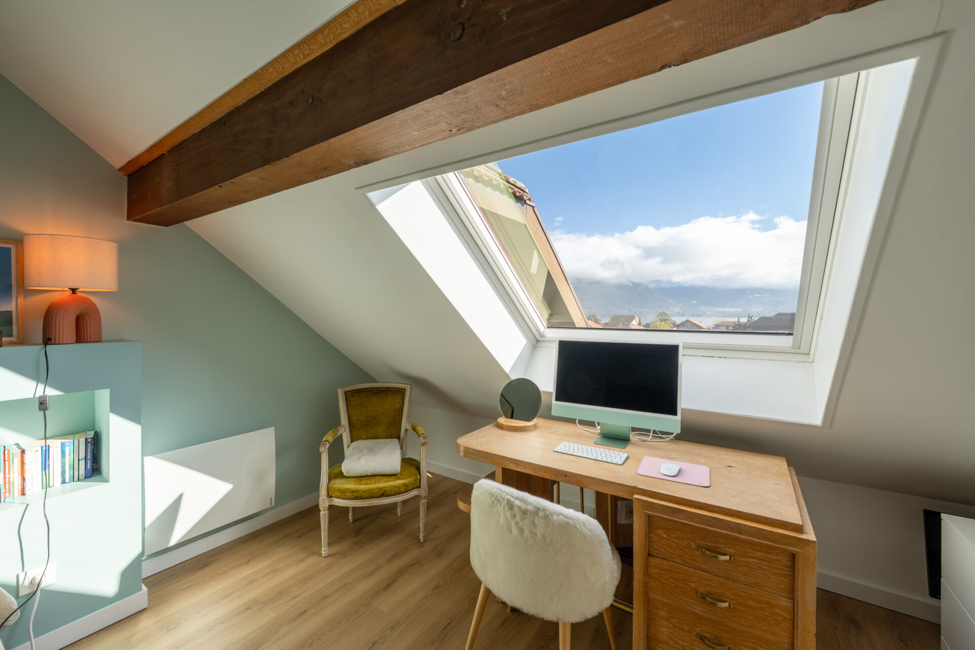 L’agence IMMO du lac vous présente en exclusivité cet appartement type 4 de 82.60m² loi Carrez et 103.64m² au sol, situé à Sévrier, sur les bords du lac, au dernier étage d’une petite copropriété avec ascenseur.