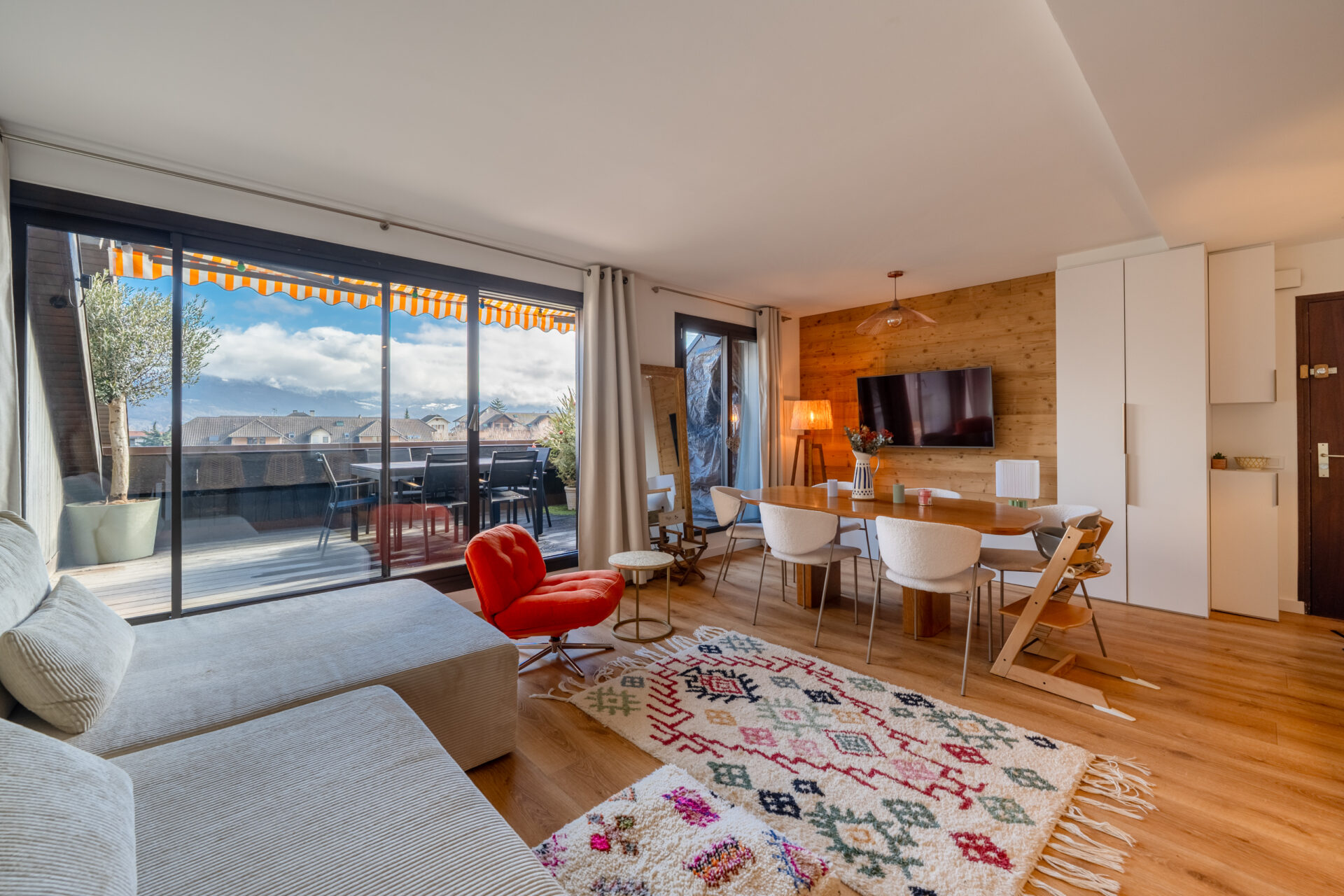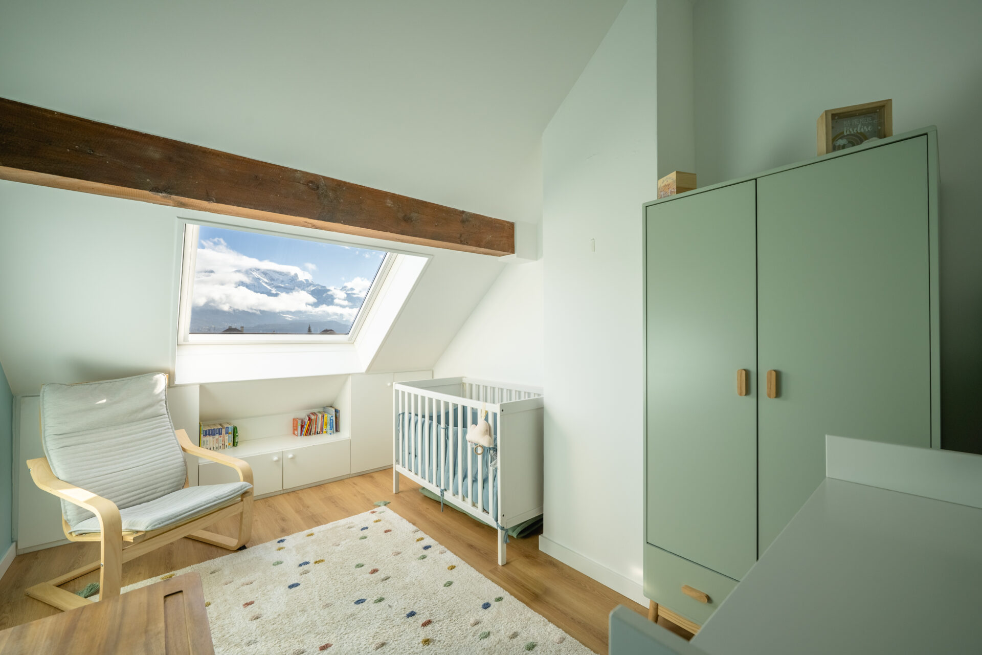 Son emplacement privilégié permet de rejoindre en seulement 2 minutes à pied le lac, la plage de Sévrier et la piste cyclable, ainsi que le centre de Sévrier et l’ensemble de ses commodités (écoles, commerces, médecins…).