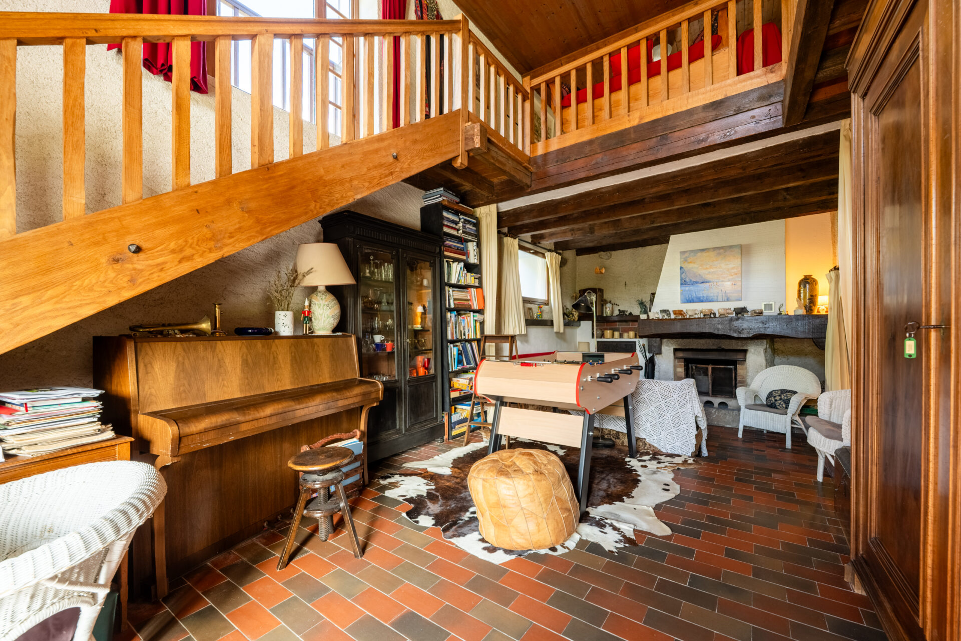 Dès l’entrée, l’ancienne écurie transformée en vaste salle à manger et salon impressionne par son superbe plafond voûté en berceau. Cet espace convivial s’accompagne d’une cuisine indépendante avec accès à une terrasse et d’un séjour chaleureux avec cheminée, dominé par une mezzanine accueillant coin lecture et salon intime.
