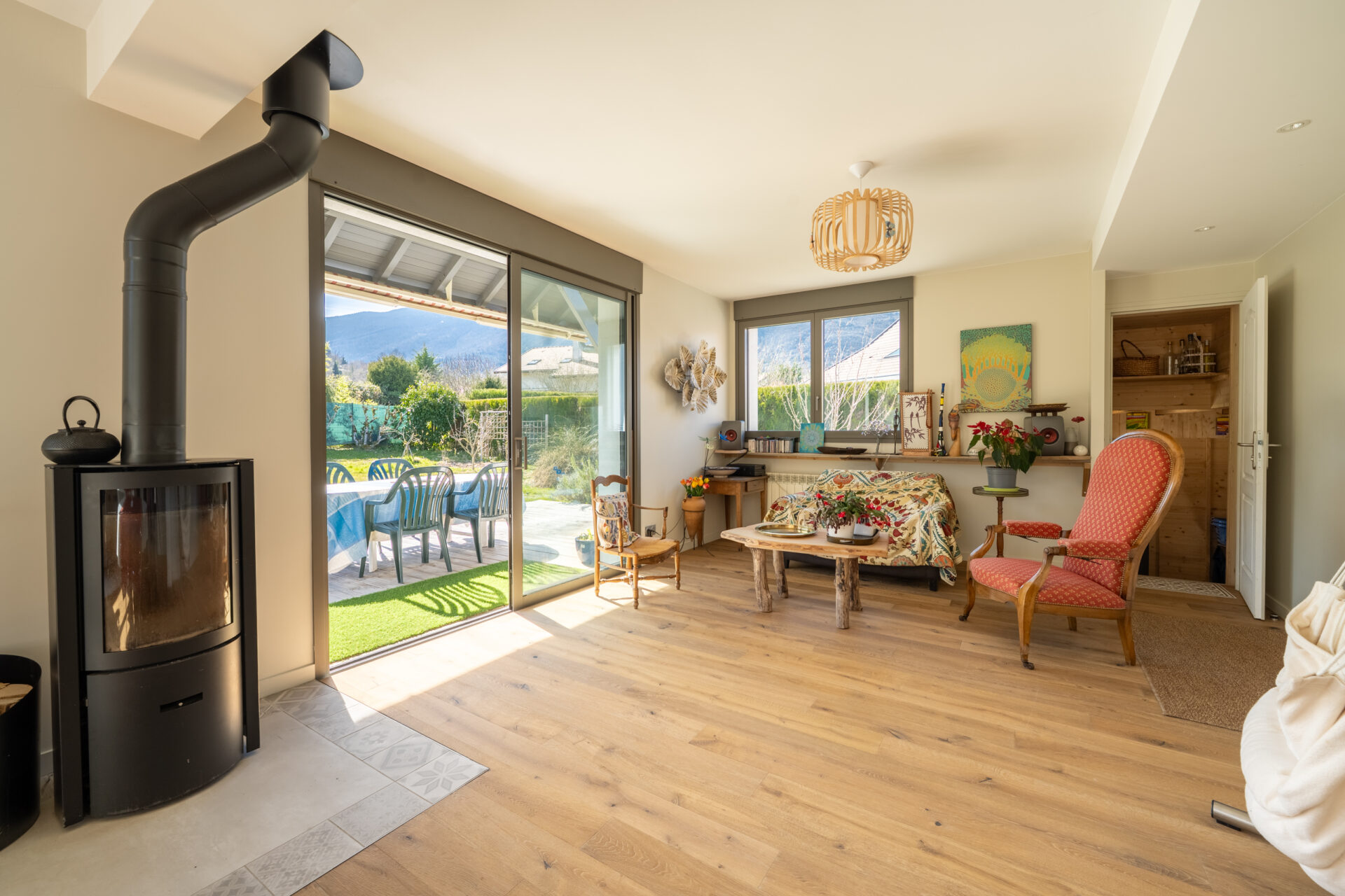 L’agence IMMO du Lac vous propose en exclusivité cette belle maison familiale, idéalement située à proximité immédiate du centre de Saint-Jorioz. Édifiée en 1998, elle séduit par ses volumes généreux (205.89m² en surface habitable et 241.64m² utiles hors garage) et son cadre de vie privilégié. Implantée sur un terrain plat et arboré de 1 218 m², elle offre un environnement calme et agréable.