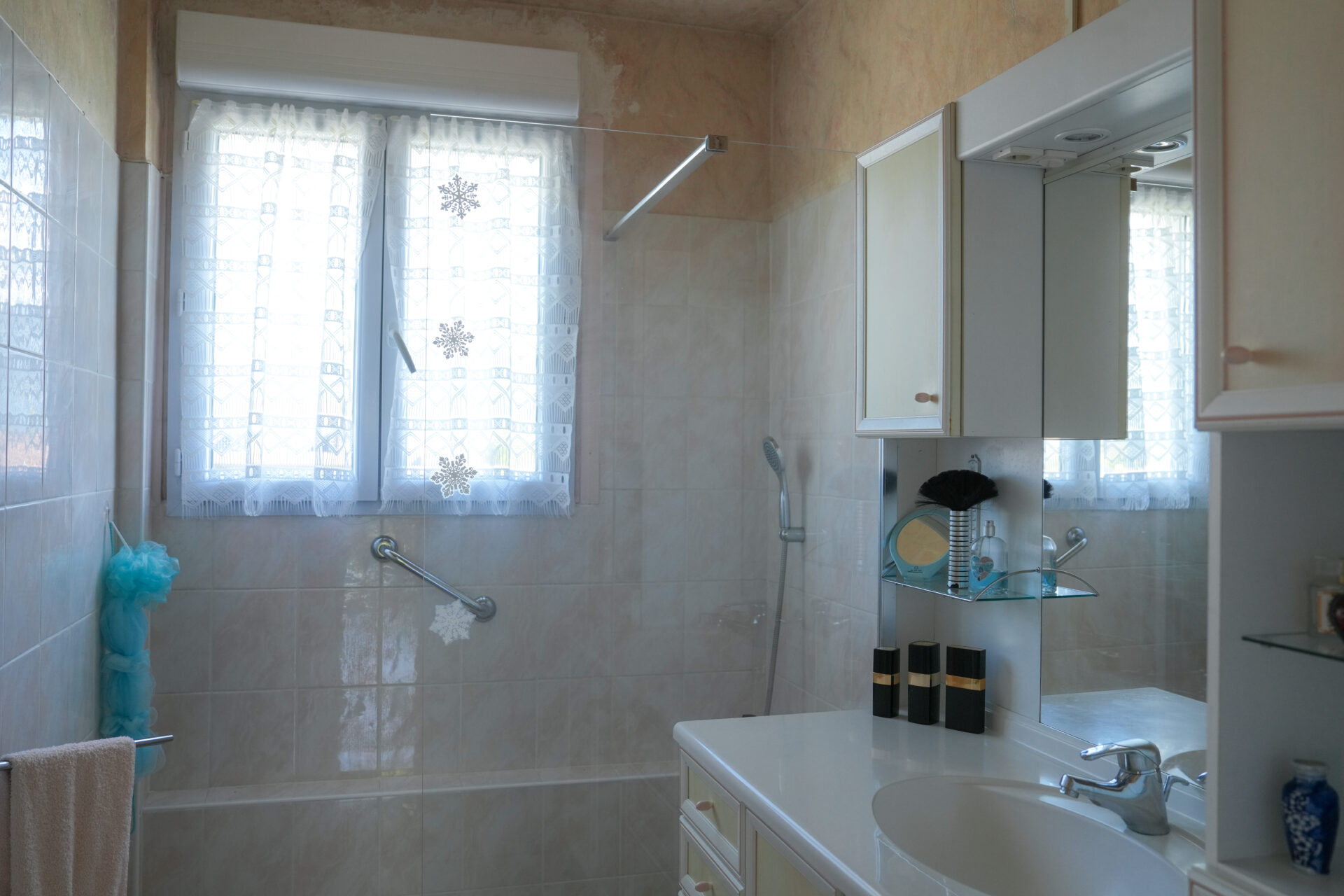 À l’étage, deux grandes chambres avec placards et rangements sous combles, ainsi qu’une salle d’eau avec WC.