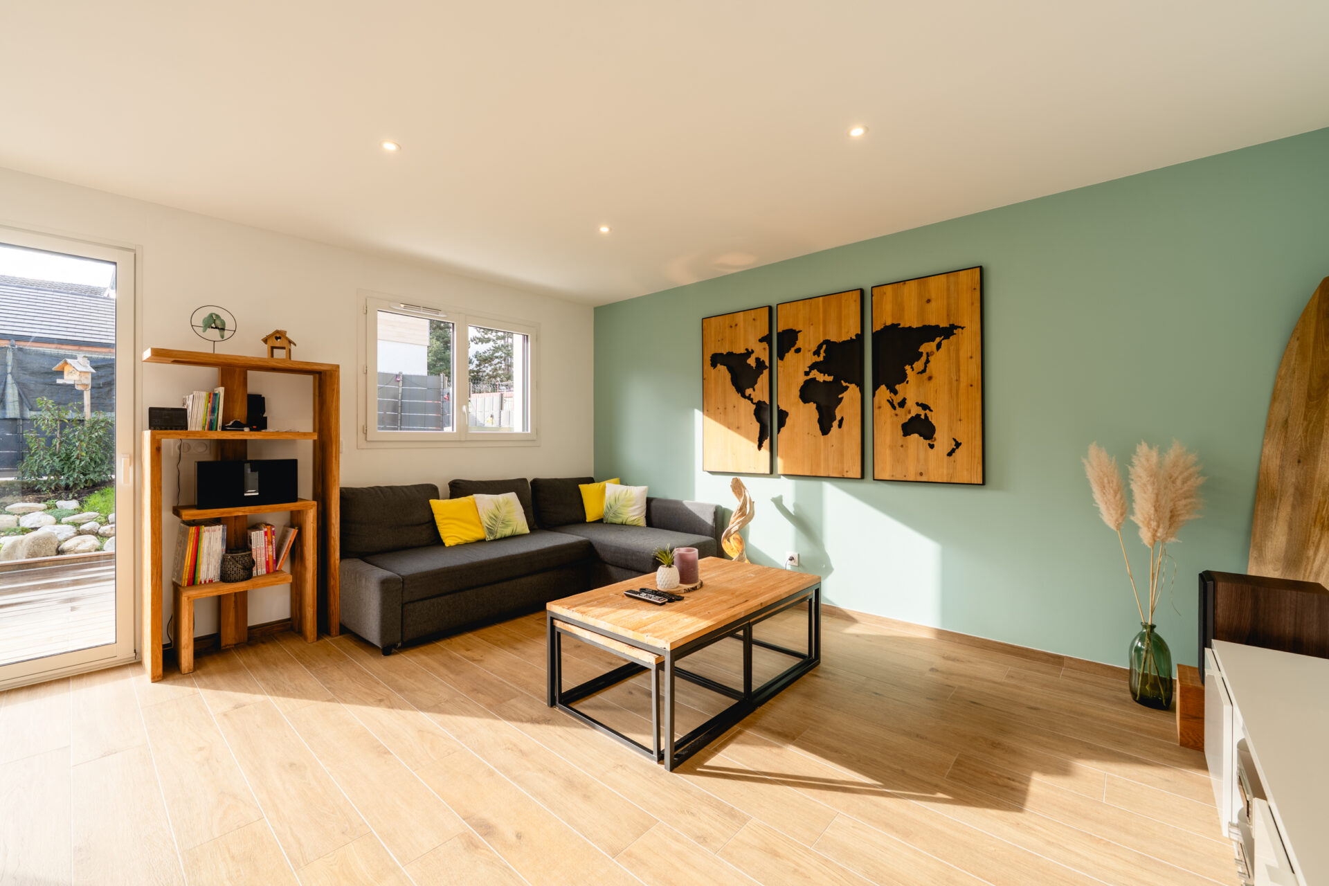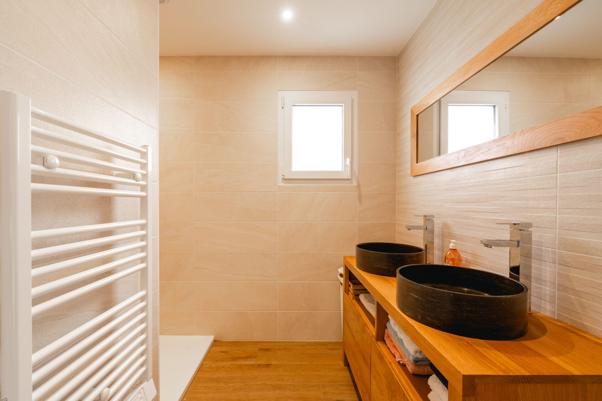 Au rez-de-chaussée, vous profiterez d’une entrée, d’une cuisine entièrement équipée ouverte sur un salon/séjour baigné de lumière (exposition sud/est), donnant directement accès à la terrasse et au jardin. Un WC indépendant avec coin buanderie complète ce niveau.