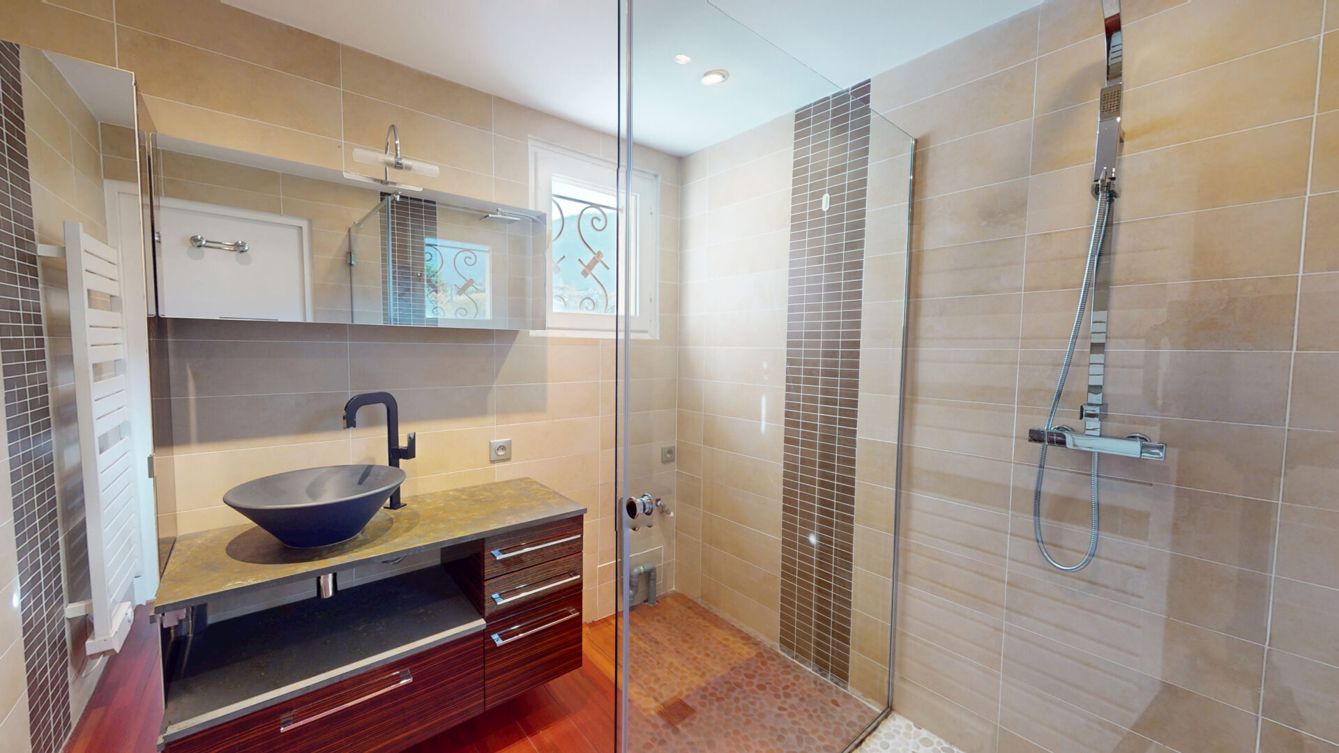 Il comprend une entrée avec placard, une cuisine ouverte sur le séjour très lumineux avec accès à une terrasse exposée sud, 1 chambre avec placard, une salle d’eau et un WC séparé.