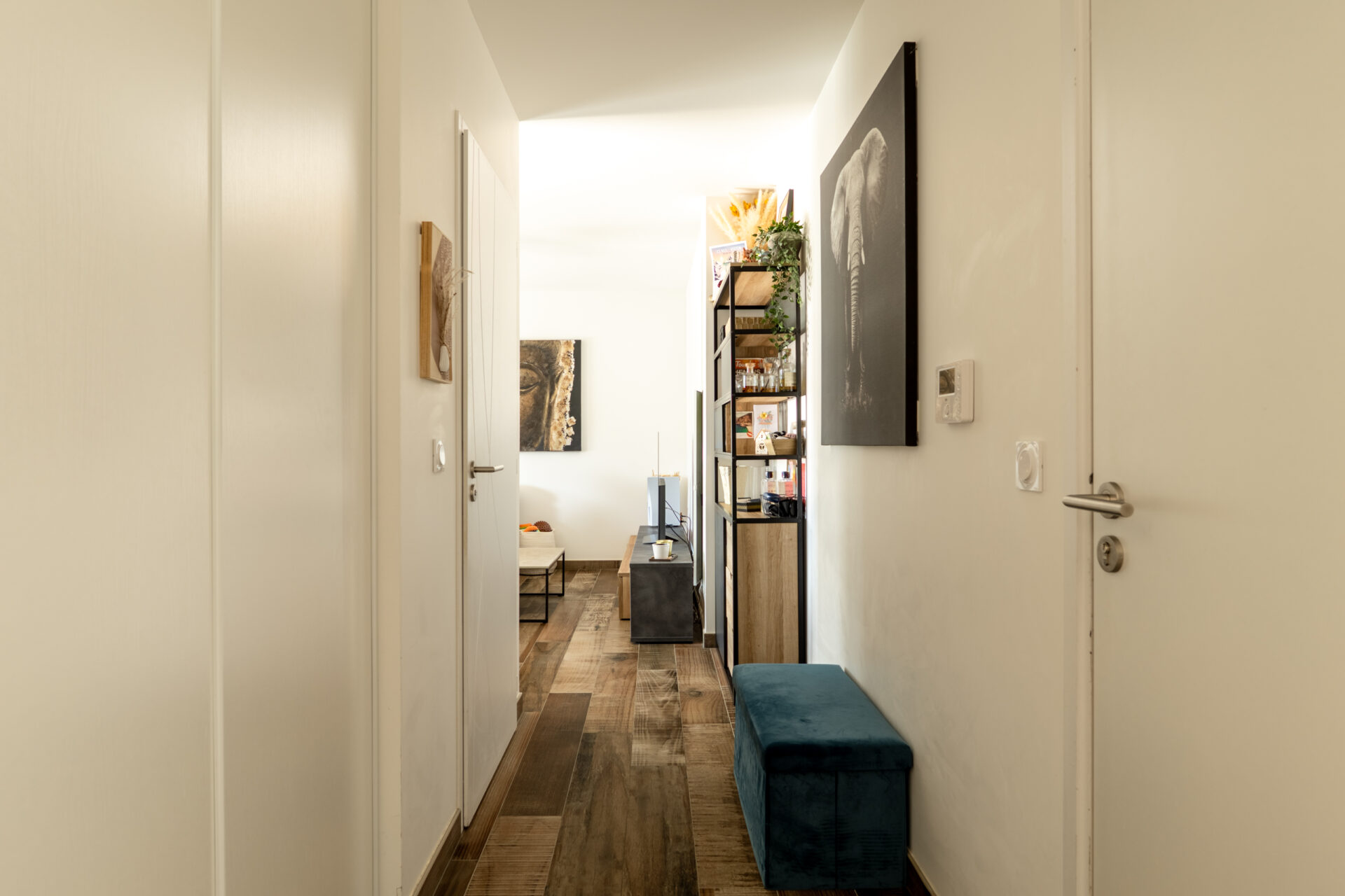 Il est composé d’une entrée avec placard, une cuisine aménagée et équipée ouverte sur le salon/séjour avec accès sur un grand balcon exposé EST offrant une jolie vue sur