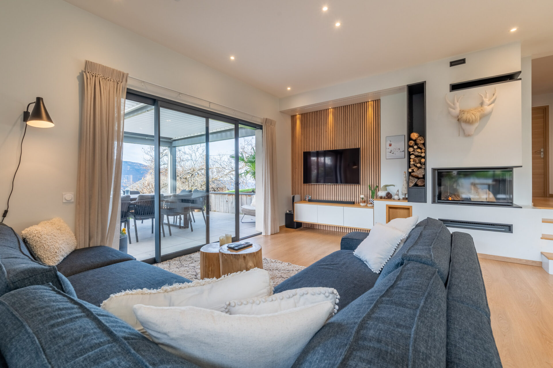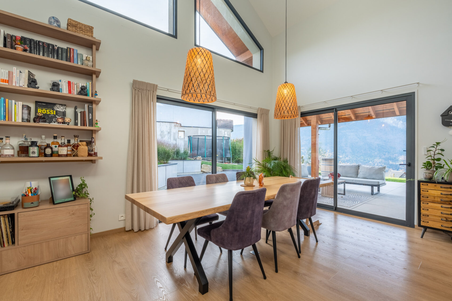 L’agence IMMO du lac vous présente cette magnifique villa d’environ 163m², implantée sur un terrain paysager de 887 m², offrant une vue imprenable sur le lac et les montagnes.