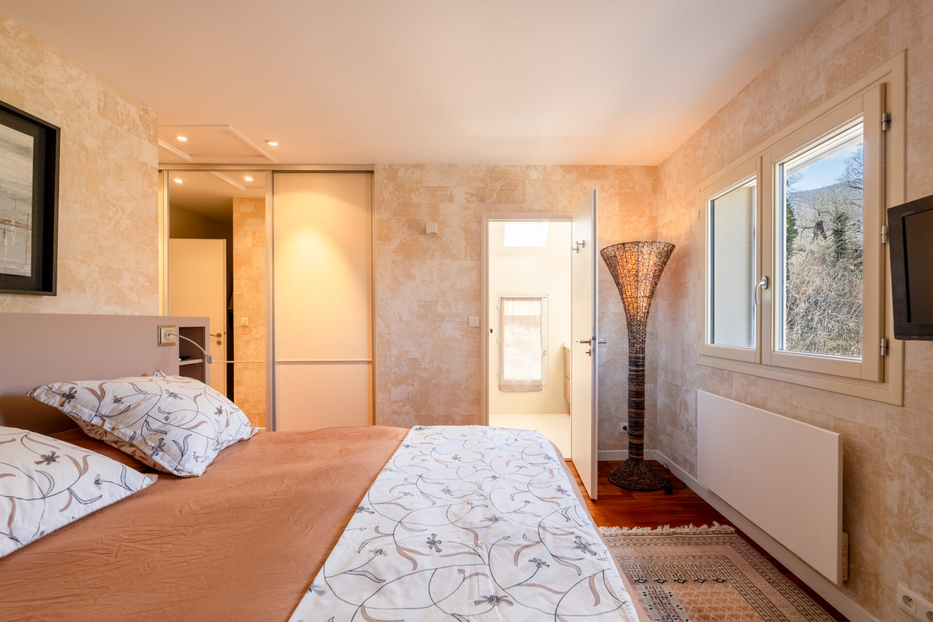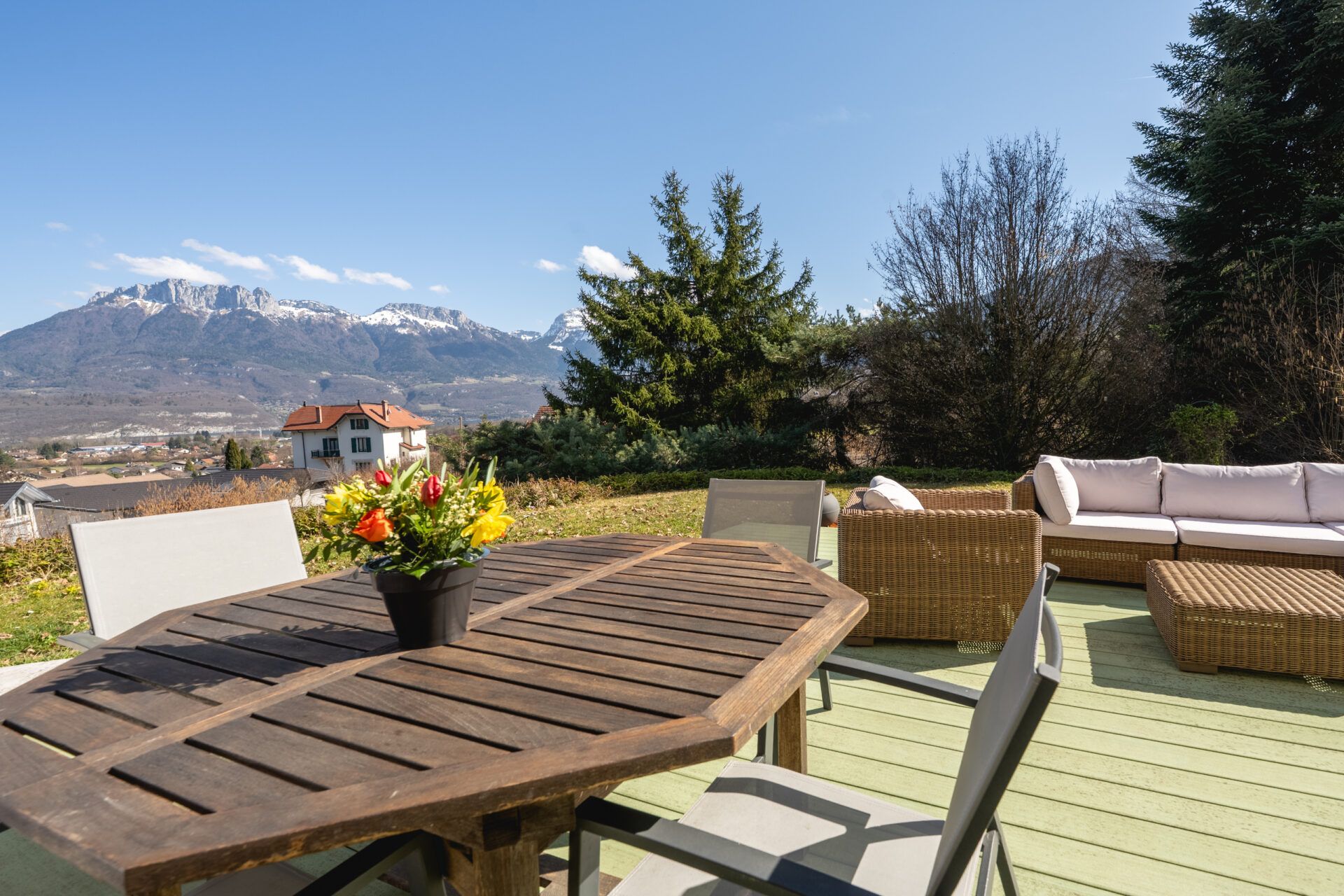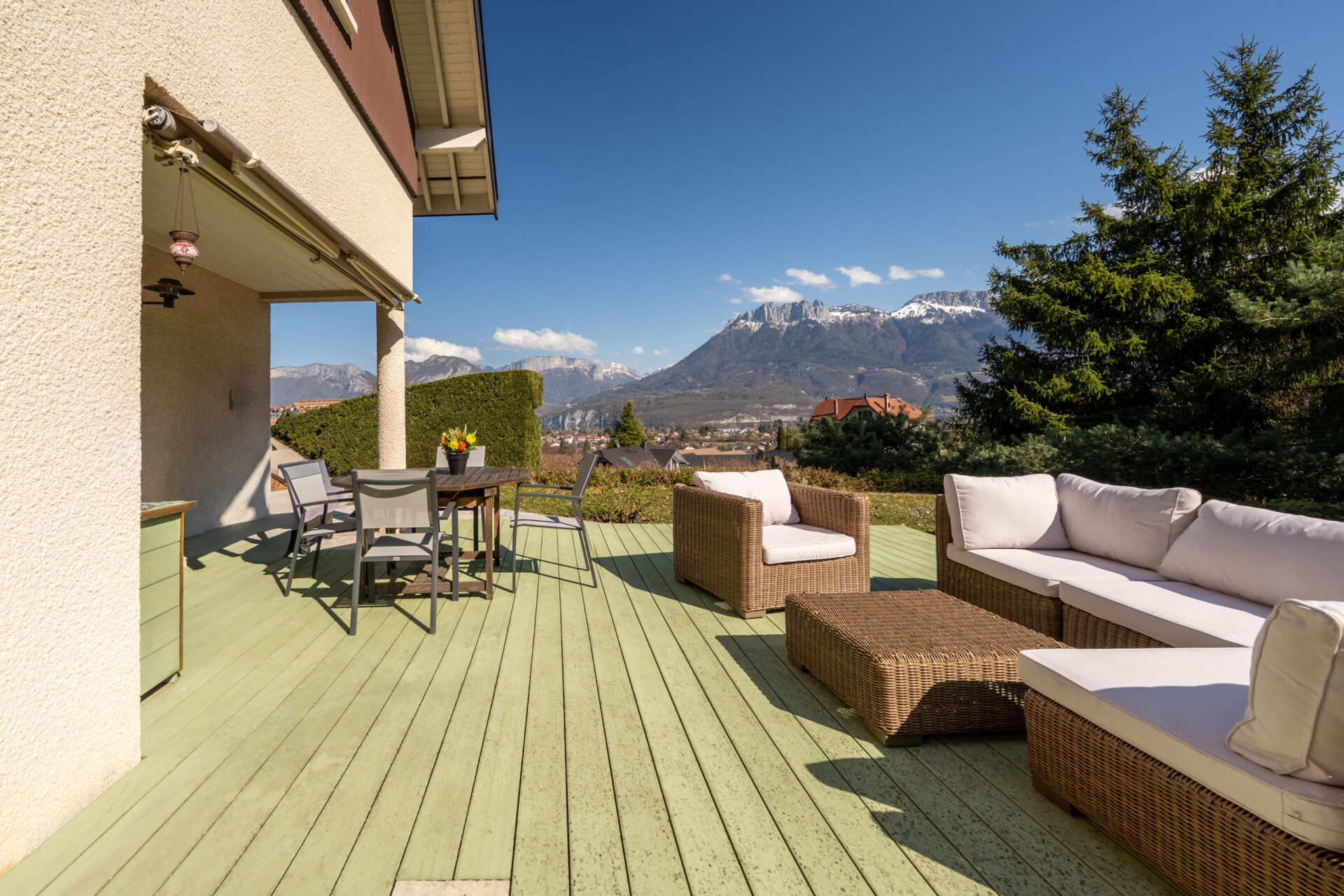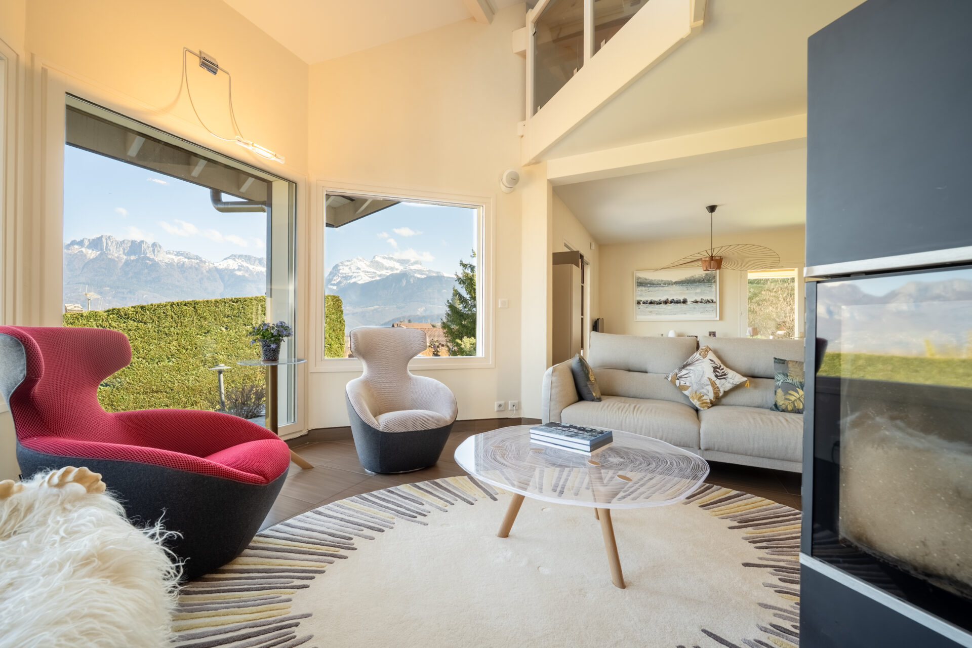 L’agence IMMO du lac vous présente en exclusivité cette magnifique villa, nichée au fond d’une impasse, dans un calme absolu, édifiée en 1992 implantée sur un terrain arboré de 1 200 m² en position dominante. Elle surplombe le lac et les montagnes environnantes, offrant un panorama exceptionnel.